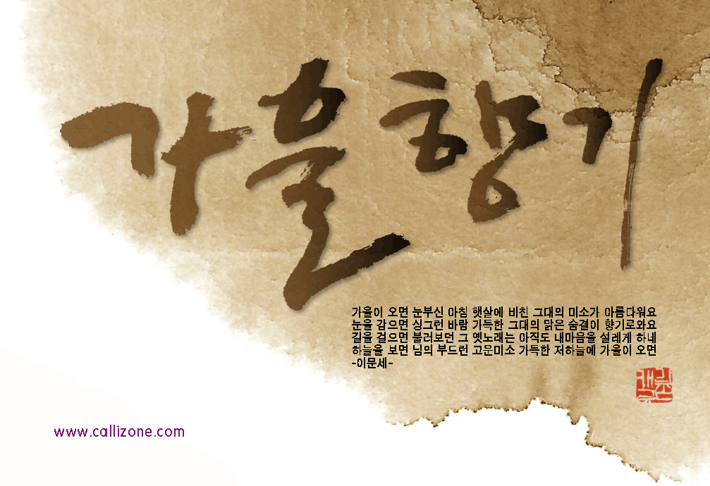 [직접쓴 캘리} 가을향기 callizone 일반 1 9294 2007.10.02 14:07 http://www.callizone.com/home/index.php + 560 가을이 익어가고 있습니다. 가을을 음미하면서 한번 만들어 보았습니다. 회원님들 감기조심 하세요^^
